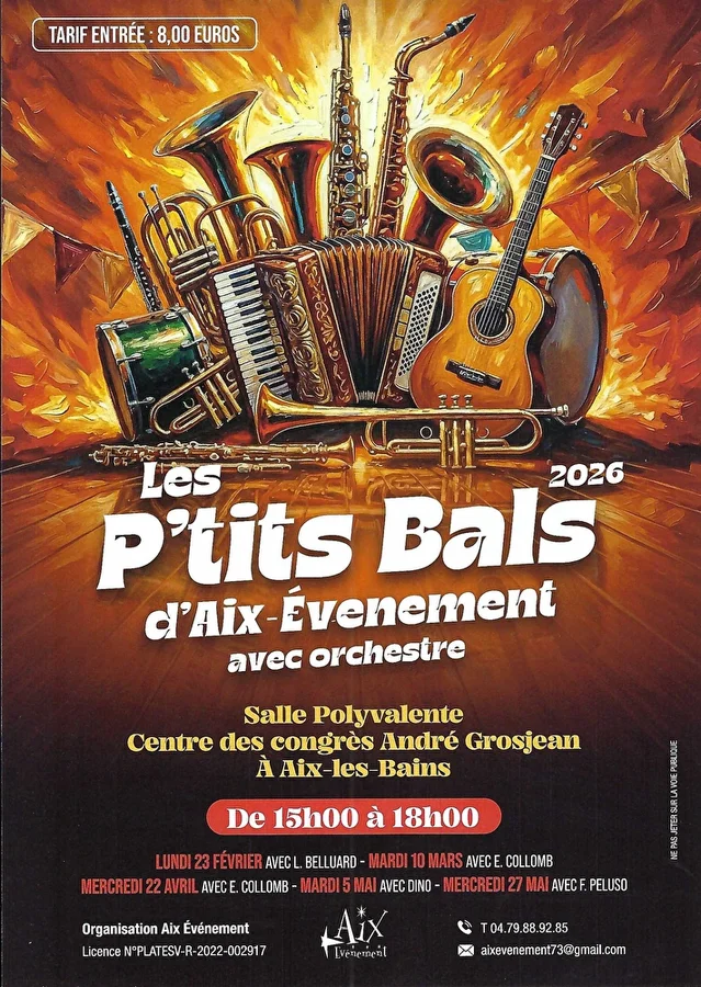 Les Petits Bals d’Hiver se déroulent à la Salle Polyvalente 3 C André Grosjean, située rue Jean Monard à Aix-les-Bains. Animés par un musicien en direct, ces après-midis dansants sont conçus pour un public intergénérationnel, désireux de partager des moments de danse et de convivialité. Pour plus d’informations, vous pouvez contacter le 04 79 88 92 85.
